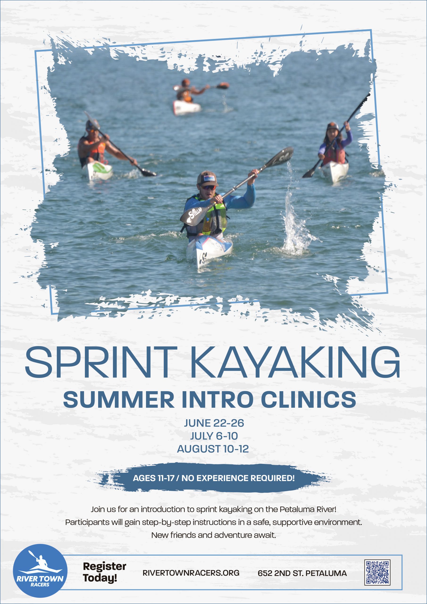 Learn to race sprint kayaks on the Petaluma River at our one and only introductory clinic for new prospective club members.